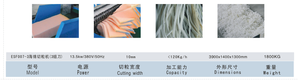 适用于将(jiāng)海綿、裥綿(帶布(bù)的海綿)、噴膠綿(mián)等切成比較規(guī)則的顆‼️粒形狀(zhuàng)。(長短3-30mm可調)